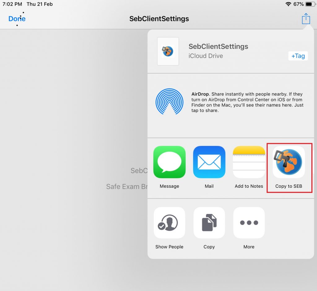 6. Select “Copy to SEB” as shown below